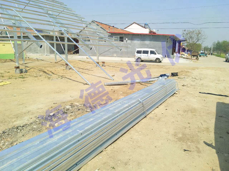 光伏C型钢支架组件进场,采用表层热镀锌工艺的Q235B碳素钢材质作为支架的主体,坚固耐用。