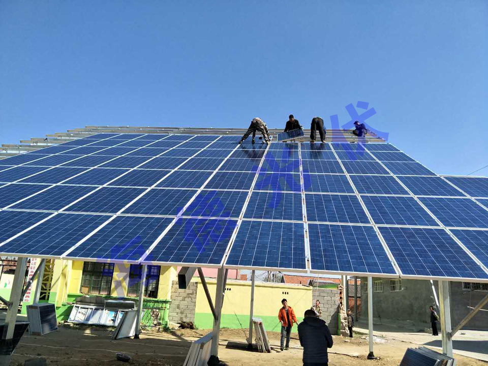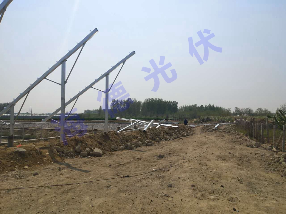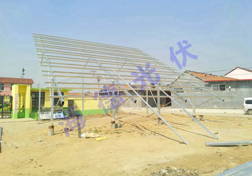 光伏支架与地面桩体焊接固定,倾斜角度更适合当地的光照条件,确保阳光吸收转化率达到最大最优化。