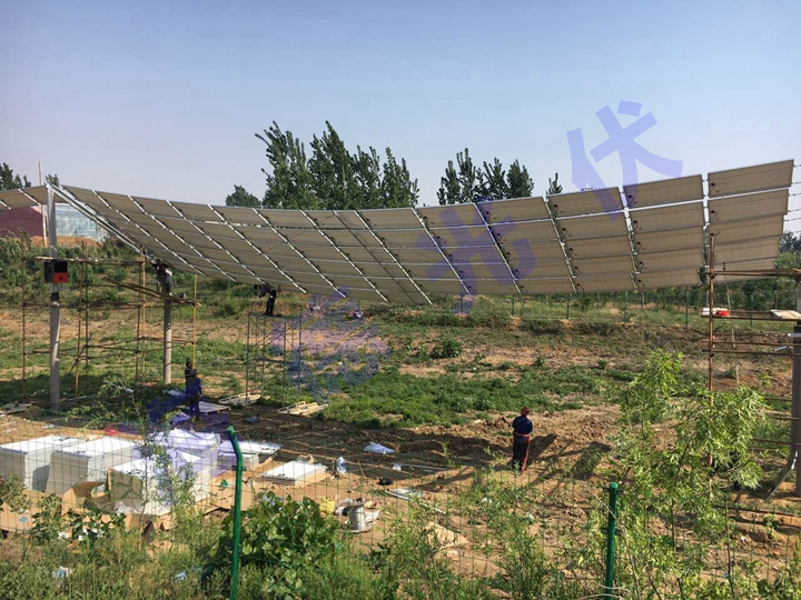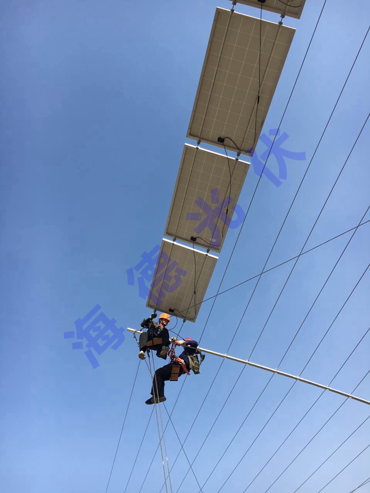 远远望去,整套光伏电池板就像飘在空中一样,令人叹为观止。