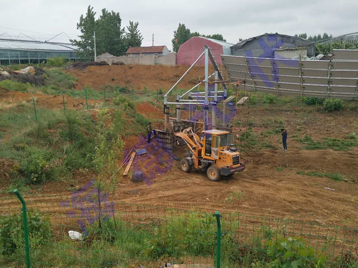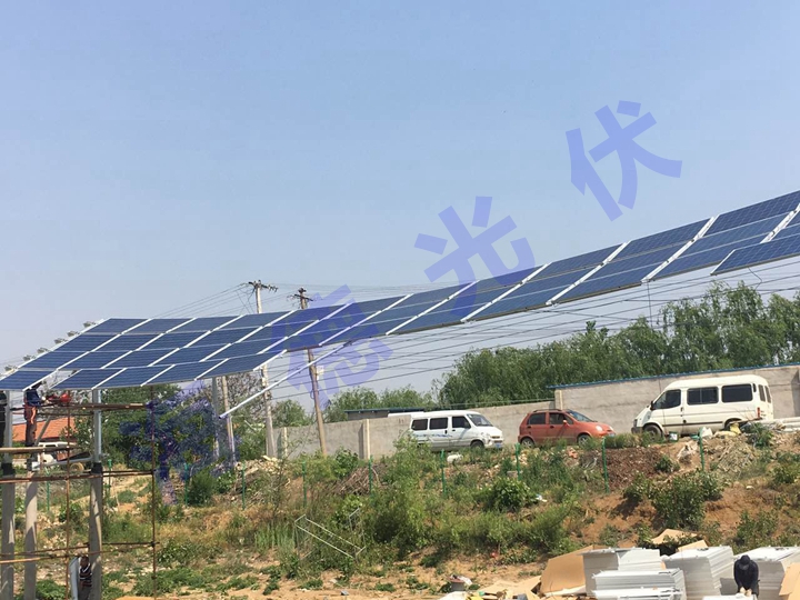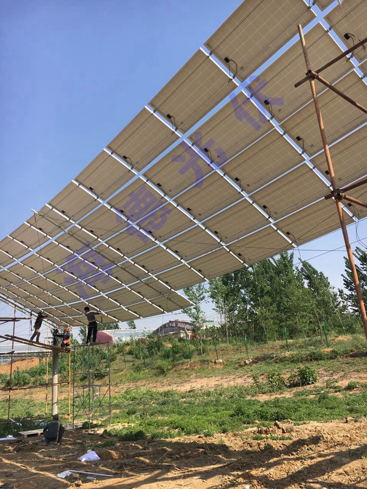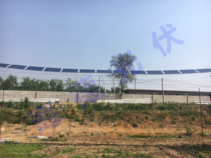 该工地采用柔性光伏支架系统,在当地属于首创,目前仅此一处,这是我公司在分布式光伏发电项目上的一次大胆尝试和创新。