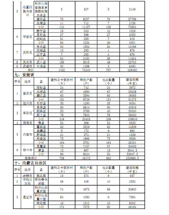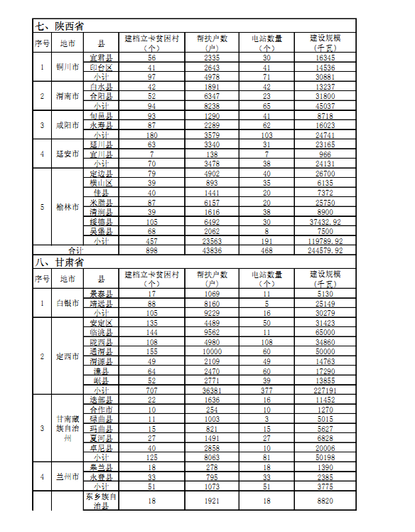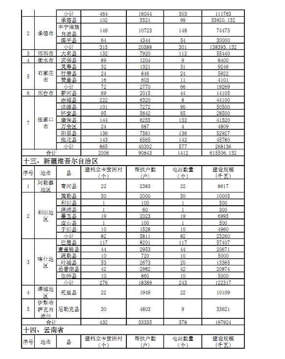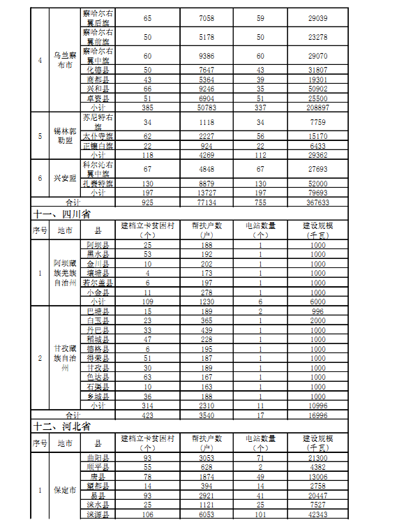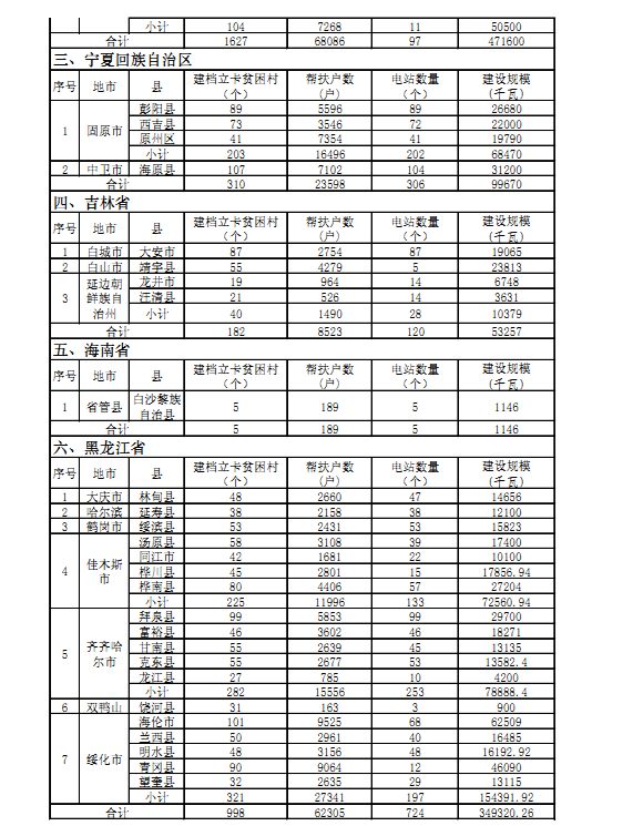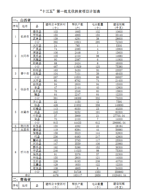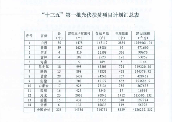 “十三五”第一批光伏扶贫项目计划汇总表: