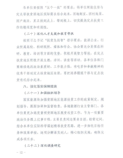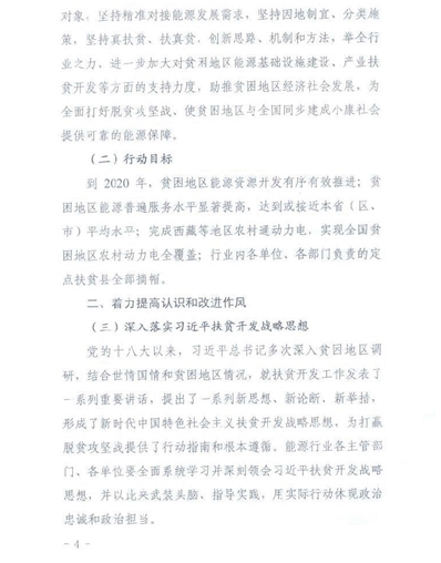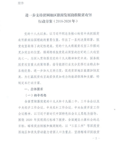 为了深入贯彻和落实党的十九大精神和党中央、国务院脱贫攻坚的重大决策部署,充分发挥能源行业的特点和优势,进一步加大支持力度,促进贫困地区能源加快发展,为打赢脱贫攻坚战提供更加有力的能源保障和支撑,近日,国家能源局下发了《进一步支持贫困地区能源发展助推脱贫攻坚行动方案(2018-2020年)》的文件。