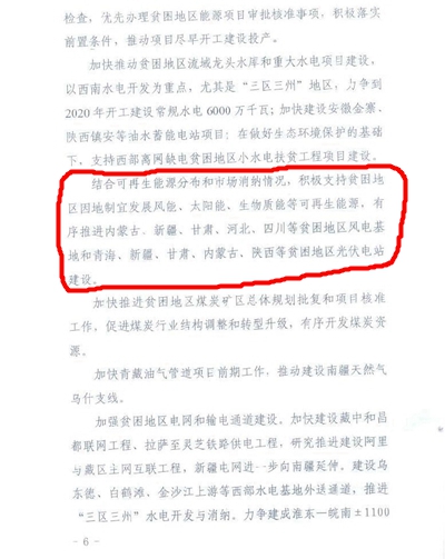 其中着重提到了要精准实施光伏扶贫工程,优先向深度贫困地区安排,并且要确保工程质量和效果,地区包括青海、新疆、甘肃、内蒙古及陕西等地的一些贫困地区的光伏电站建设。