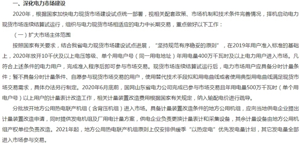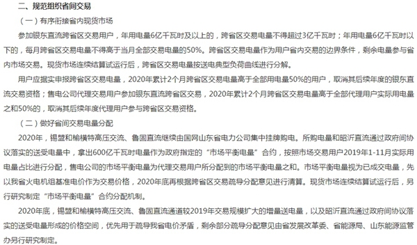 山东2020年全省电力市场交易有关工作的通知