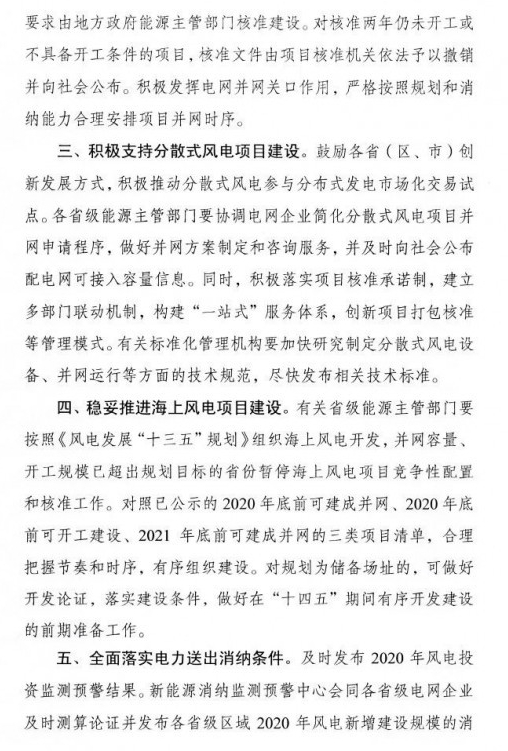 此外,根据《征求意见函》,集中式陆上风电项目和海上风电项目仍按照《风电项目竞争性配置指导方案(2019年版)》组织竞争性配置,分散式风电项目可不参与竞争性配置,按有关管理和技术要求由地方政府能源主管部门核准建设。