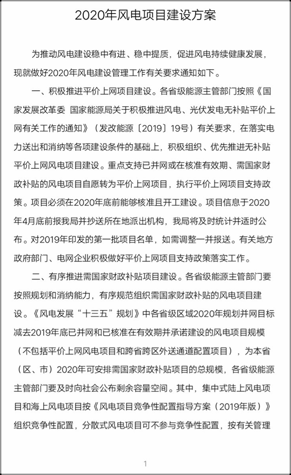 近日,国家能源局等相关部门发布通知,对2020年的风电及光伏发电项目建设事宜作出说明,主要内容如下: