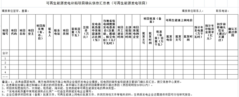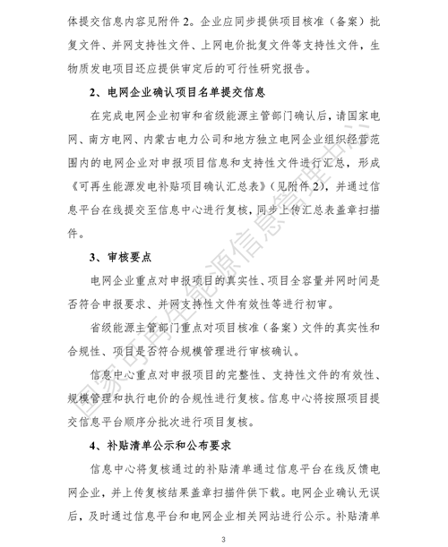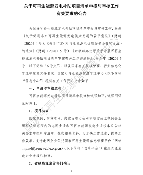 关于可再生能源发电补贴项目清单申报与审核工作有关要求的公告