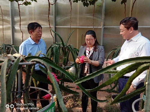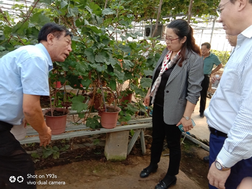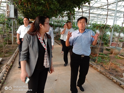 考察团一行走进沙北头庄户学院、农民创业园、特色种植作物培育基地,实地查看了盆景葡萄、火龙果、荔枝的种植生长情况。公司理事长、园区负责人王桂欣向来访的各位领导细致讲解了园区的创设、发展及规划等情况,并就盆景葡萄等特色经济作物的培育、养护、套盆、挂果、销售等一系列环节做了说明。