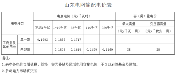 关于山东电网2020-2022年输配电价和销售电价有关事项的通知