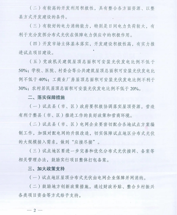 《通知》还指出了申请试点条件,要求具有丰富的屋顶资源;有较高的开发利用积极性;有较好的电力消纳能力;开发市场主体基本落实,开发建设积极性高,有实力推进试点项目建设。