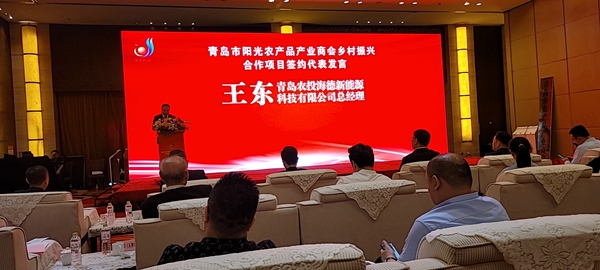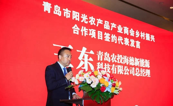 总经理王东作为签约合作企业代表之一上台发言,表示公司将立足于青岛,扎根于新能源领域,践行国家“碳达峰、碳中和”的双碳目标,打造乡村振兴齐鲁样板示范工程,积极投入到“东西协作、同帮互助”的国家规划中去,让新能源在国家的大计方针中不断发挥重要作用。