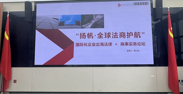 近日,由北京市京师(青岛)律师事务所主办的名为“扬帆·全球法商护航”的国际化企业出海法律 X 商事实务论坛活动在青岛召开,公司领导王总受邀参加本次活动,公司海外市场项目负责人王萱陪同参会。